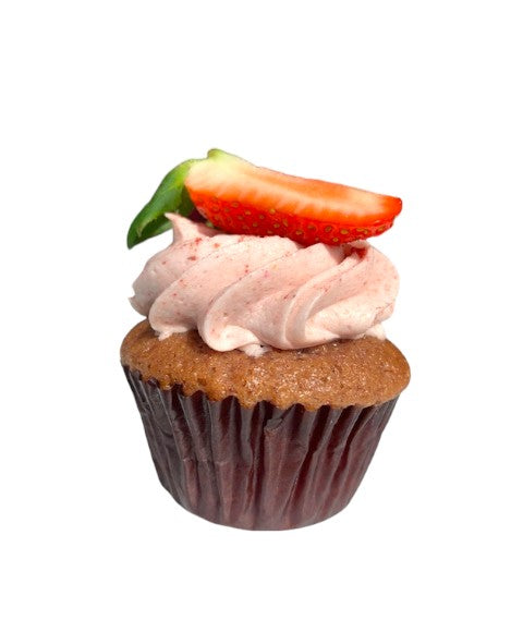 Our fresh baked and flavorful Strawberry cupcakes are the perfect balance of strawberry cake and strawberry frosting.
